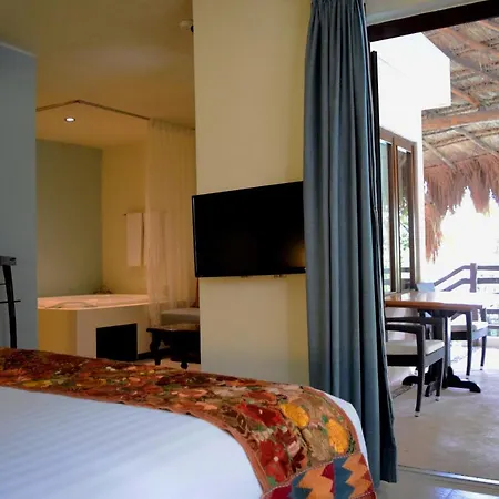 La Tortuga Hotel & Spa - Adults Only de Playa del Carmen offre des chambres avec un balcon comprenant un fer à repasser et une table à repasser, une climatisation, ainsi qu'une TV à écran plat avec des chaînes satellite. Les salles de bain fournissent une baignoire spa, une douche à l'italienne et une toilette séparée, en outre, le confort est assuré par un sèche-cheveux et des draps de bain.